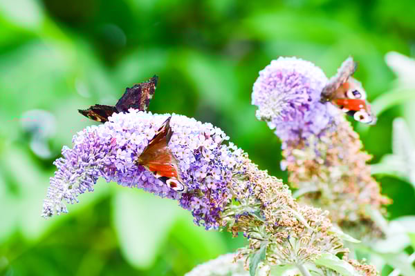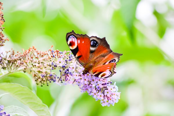 In meinem Garten gibt es einen Strauch, welcher offensichtlich einen Schmetterlings-Anziehungspunkt der allerersten Güte darstellt. Mir ist das noch nie so aufgefallen wie dieses Jahr. Sinnigerweise nennt sich der Busch Schmetterlings-Flieder und er macht seinem Namen alle Ehre. Es tummeln sich dort insbesondere Tagpfauenaugen, aber auch Monarchfalter und Zitronenfalter habe ich gesichtet.